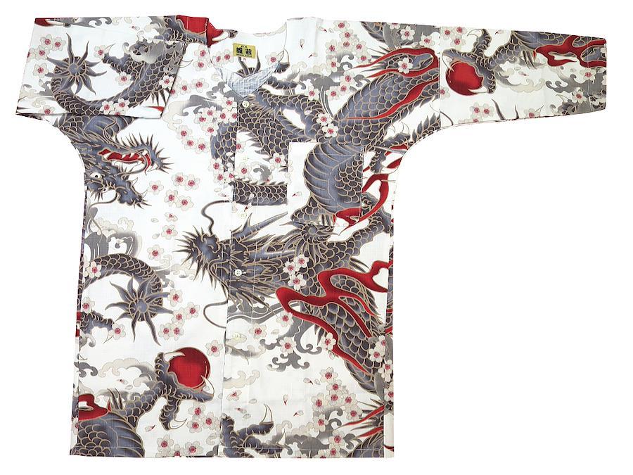 桜と龍(白)中サイズ(M) 大人鯉口シャツ単品