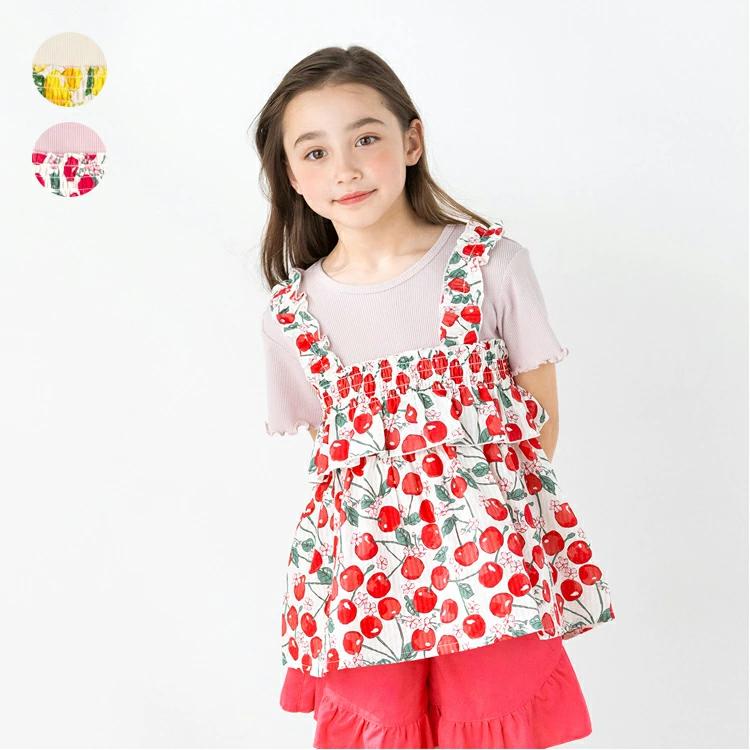 サクランボとレモン柄のサッカー素材のキャミを半袖Tシャツにドッキングしたデザイン。1枚で重ね着が楽しめる半袖Tシャツ。胸のシャーリングデザインも可愛い!同じフルーツ柄を使ったチュニックTシャツ(N44893)、ワンピース(N44393)があるので、姉妹やお友達とお揃い、ペアコーデ、リンクコーデもおすすめ!おそろいアイテムはギフトやプレゼントにも人気です!【アイテム】トップス シンプル ガーリー フェミニン カジュアル お洒落 オシャレ かわいい 可愛い 普段着 デイリーウェア お出かけ着 お外着 お外遊び着 子ども こども 女児 女の子 ガールズ キッズ ベビーサイズ トドラーサイズ 幼稚園 保育園 小学校 通園 通学 小学生 2025年春夏物新作 丸高衣料 姉妹 お揃い オソロ おそろい お揃いリンク リンクコーデ ペアルック レッド 赤色 イエロー 黄色 れもん 檸檬 さくらんぼ チェリー フルーツ 果物 クレセント コットン100% 綿100%