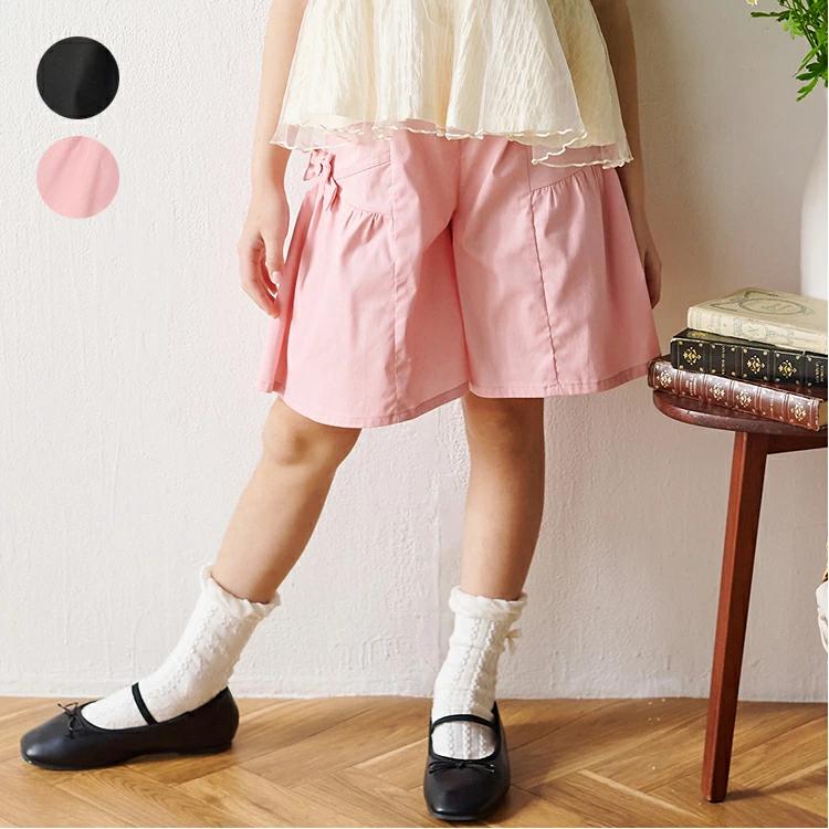 脇のリボンがポイント!シンプルでも女の子らしい3分丈のキュロットパンツ。ストレッチ入りの生地で動きやすい!【アイテム】ナチュラル シンプル ベーシック フェミニン ガーリー 無地 カジュアル お洒落 オシャレ かわいい 大人可愛い 普段着 デイリーウェア お出かけ着 お外着 外遊び着 ハーフパンツ 短パン 半パン 半ズボン ボトムス 子ども こども 女児 女の子 ガールズ キッズ ベビーサイズ トドラーサイズ 幼稚園 保育園 小学校 通園 通学 小学生 2024年春夏物新作 丸高衣料 ショートパンツ ショーパン 短パン