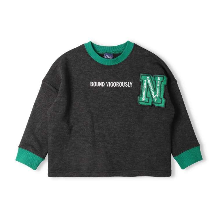 2枚の生地を貼り合わせたボンディング素材で暖かみのあるトレーナー、スウェット。立体感のあるNのアップリケ、衿ぐりと袖の配色がポイント!肩落ちのワイドシルエット。(ベビーサイズのみ肩ボタン仕様になります。)【アイテム】トップス カジュアル お洒落 オシャレ かっこいい かわいい 可愛い 普段着 デイリーウェア お出かけ着 お外着 お外遊び着 子ども服 こども服 男児 男の子 ボーイズ キッズ ベビーサイズ トドラーサイズ 幼稚園 保育園 小学校 通園 通学 小学生 2024年秋冬物新作 丸高衣料 ロングスリーブ 長袖 ブラック 黒色 グレー 灰色 クレセント