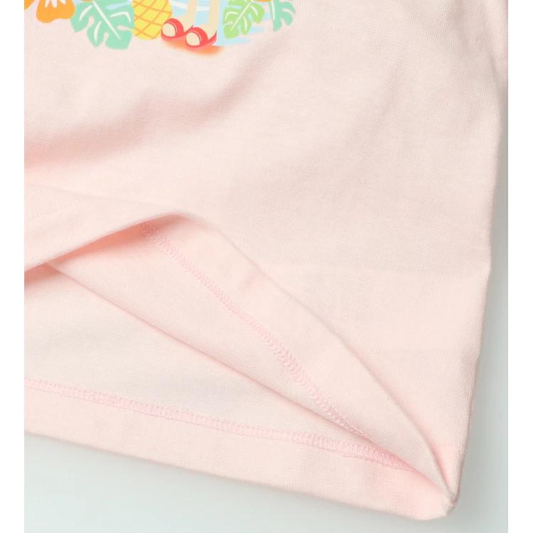 【安心の日本製】でギフトやプレゼントにもオススメ!肌触りの良い綿100%。リゾート感あふれるダディコのプリント入り。フレアーな袖が女の子らしい半袖Tシャツ。【アイテム】トップス シンプル ガーリー フェミニン カジュアル お洒落 オシャレ かわいい 可愛い 普段着 デイリーウェア お出かけ着 お外着 お外遊び着 子ども こども 女児 女の子 ガールズ キッズ ベビーサイズ トドラーサイズ 幼稚園 保育園 小学校 通園 通学 小学生 2025年春夏物新作 丸高衣料 コットン100% 綿100% made in Japan メイドインジャパン 国内生産 ホワイト 白色 ピンク