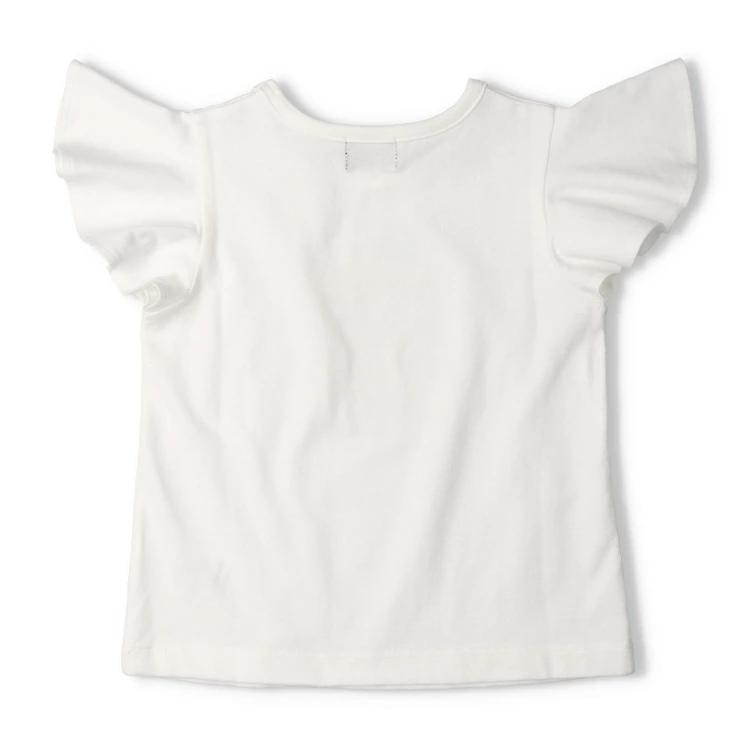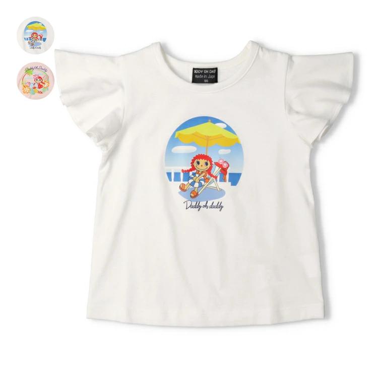 【安心の日本製】でギフトやプレゼントにもオススメ!肌触りの良い綿100%。リゾート感あふれるダディコのプリント入り。フレアーな袖が女の子らしい半袖Tシャツ。【アイテム】トップス シンプル ガーリー フェミニン カジュアル お洒落 オシャレ かわいい 可愛い 普段着 デイリーウェア お出かけ着 お外着 お外遊び着 子ども こども 女児 女の子 ガールズ キッズ ベビーサイズ トドラーサイズ 幼稚園 保育園 小学校 通園 通学 小学生 2025年春夏物新作 丸高衣料 コットン100% 綿100% made in Japan メイドインジャパン 国内生産 ホワイト 白色 ピンク