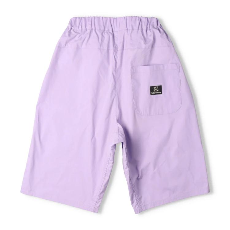 タイプライターストレッチの生地を使用した膝丈5分丈のハーフパンツ。無地のパープルとグリーンとクレイジー配色の3色展開。男の子も女の子もユニセックスで着られるアイテム。同じデザインのベビー、トドラーサイズはV35118になります。【アイテム】シンプル ベーシック 無地 カジュアル お洒落 オシャレ かっこいい かわいい 可愛い 普段着 お外着 お外遊び着 デイリーウェア お出かけ着 ハーフパンツ 短パン 半パン 半ズボン ボトムス 子ども こども 男児 男の子 ボーイズ キッズ ジュニアサイズ スクールサイズ 中学校 中学生 高校生 小学校 通園 通学 小学生 2025年春夏物新作 丸高衣料 パープル 薄紫色 ラベンダー ミントグリーン 黄緑色 エメラルドグリーン マルチカラー ダディオダディ