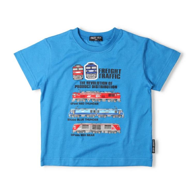 男の子が大好きな電車アイテム!人気のJR貨物列車デザイン!貨物列車をけん引している機関車のレッドサンダー、ブルーサンダー、レッドベアの3車体のプリント入りの半袖Tシャツ。【アイテム】トップス カジュアル お洒落 オシャレ かっこいい かわいい 可愛い 普段着 デイリーウェア お出かけ着 お外遊び着 子ども こども 男児 男の子 ボーイズ キッズ ベビーサイズ トドラーサイズ 幼稚園 保育園 小学校 通園 通学 小学生 2025年春夏物新作 丸高衣料 鉄道 子鉄 車両 電車 電鉄 トレイン ホワイト 白色 ブルー 青色 ハングリーハート コットン100% 綿100%