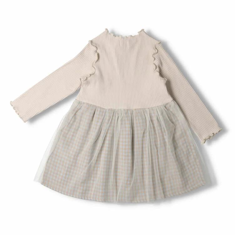 衿ぐりのメロウフリルがアクセントの長袖ワンピース。優しいWガーゼのギンガムチェック柄生地にチュールを重ねたスカートのデザインがポイント!身頃は縦縞模様の凹凸感があり、伸縮性、ストレッチ性があって伸びの良いテレコ素材。秋のお出かけにオススメなアイテム。130cmまでの展開で姉妹でおそろいも楽しめます!【アイテム】長袖 ロングスリーブ トップス シンプル ガーリー フェミニン カジュアル お洒落 オシャレ かわいい 可愛い 普段着 デイリーウェア お出かけ着 お外着 お外遊び着 子ども こども 女児 女の子 ガールズ キッズ ベビーサイズ トドラーサイズ 幼稚園 保育園 小学校 通園 通学 小学生 2023年秋冬物新作 丸高衣料 赤ちゃん服 ベビー服 贈り物 ライトグレー 灰色 ライトピンク 切替 配色 キッズズー お揃い オソロイ