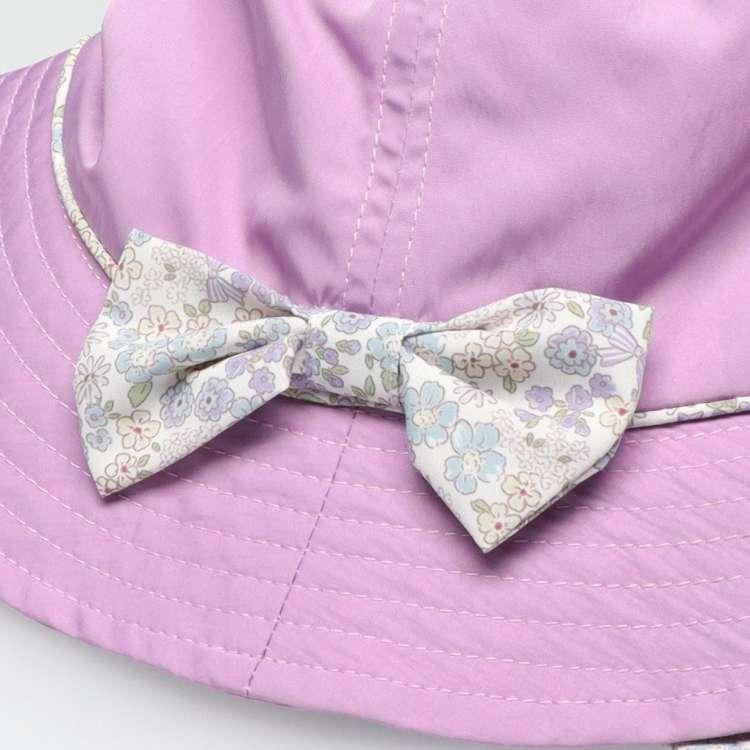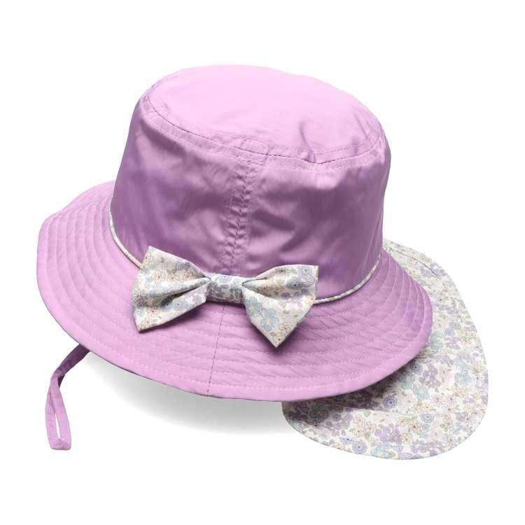 吸水速乾、UVカット、はっ水加工の機能素材のハット、帽子。合わせやすい無地ベースが◎小花柄のリボンと日よけのたれがポイント!内側頭の部分は裏メッシュになっていて通気性◎日よけのたれ部分に保冷剤を入れられるポケット付き。(保冷剤は付きません。)あごひもは取り外し可能です。【アイテム】 雑貨 カジュアル お洒落 オシャレ かわいい 可愛い 普段着 デイリーウェア お出かけ 子ども こども 女児 女の子 ガールズ キッズ ベビーサイズ トドラーサイズ 幼稚園 保育園 小学校 通園 通学 小学生 遠足 旅行 2024年春夏物新作 丸高衣料 小物 りぼん フラワー ラベンダー 薄紫色 ベージュ キッズフォーレ