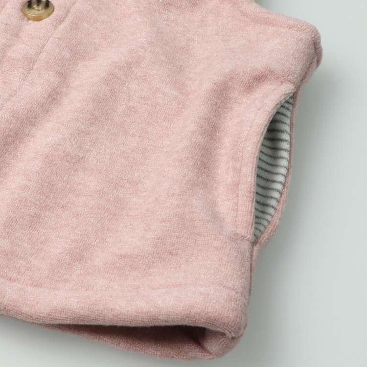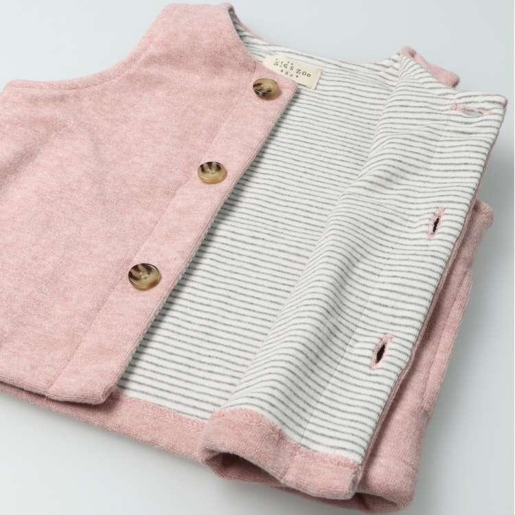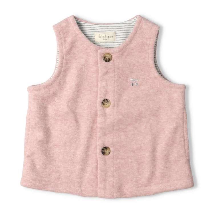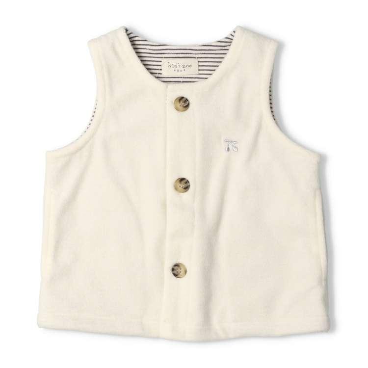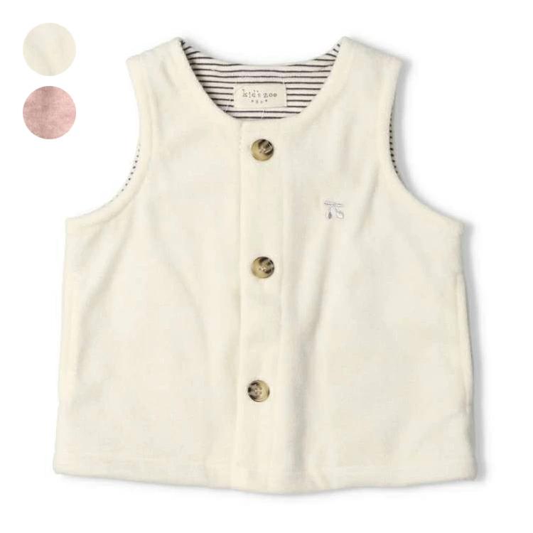 初秋から冬にかけて、1つあるとデイリーに重宝するベスト。暖かみのあるパイル起毛素材を使用し、綿100%スムース素材の裏地付きなので着心地がとてもいいです。左胸のさくらんぼ刺繍がポイント。ベビーの可愛らしさを引き立てるオフホワイトとピンクの2色展開。出産祝い等のベビーギフトにおすすめのアイテムです!【アイテム】プレゼント ギフト 赤ちゃん服 ベビー服 贈り物 トップス 無地 シンプル ガーリー カジュアル お洒落 オシャレ かわいい 可愛い 普段着 デイリーウェア お出かけ着 子ども こども 女児 女の子 ガールズ キッズ ベビーサイズ 幼稚園 保育園通園 2024年秋冬物新作 丸高衣料 オフホワイト ホワイト 白 ピンク キッズズー