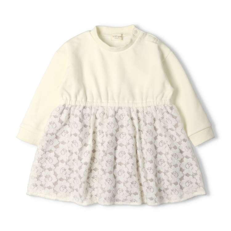 ☆80~130cmサイズ展開商品☆裏毛生地に花柄起毛レースがドッキングされた長袖ワンピース。裏毛のカジュアルさがありながら、華やかなレースによって上品でキュートな雰囲気のあるアイテムです!1枚でコーデが完成するので、思わずお出かけしたくなる一枚♪柄×柄がおしゃれなボーダーと、より上品な雰囲気のオフホワイトの2色展開です。※80~90cmのみ肩ボタン仕様です。【アイテム】長袖 ロングスリーブ トップス シンプル ガーリー フェミニン カジュアル お洒落 オシャレ かわいい 可愛い 普段着 デイリーウェア お出かけ着 お外着 お外遊び着 子ども こども 女児 女の子 ガールズ キッズ ベビーサイズ トドラーサイズ 幼稚園 保育園 小学校 通園 通学 小学生 2024年秋冬物新作 丸高衣料 赤ちゃん服 ベビー服 贈り物 ホワイト 白 ブラック 切替 配色 キッズズー お揃い オソロイ