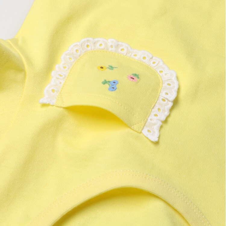 小花刺繍の入った、レース付きのポケットがポイント!デイリー使いしやすいアイテム。シンプルなデザインでも、女の子らしさをしっかり押さえた半袖Tシャツです。【アイテム】トップス シンプル ガーリー フェミニン カジュアル お洒落 オシャレ かわいい 可愛い 普段着 デイリーウェア お出かけ着 お外着 お外遊び着 子ども こども 女児 女の子 ガールズ キッズ ベビーサイズ トドラーサイズ 幼稚園 保育園 小学校 通園 通学 小学生 2024年春夏物新作 丸高衣料 フラワー お花 ホワイト 白色 クリーム イエロー 黄色 ムージョンジョン フリル コットン100% 綿100%
