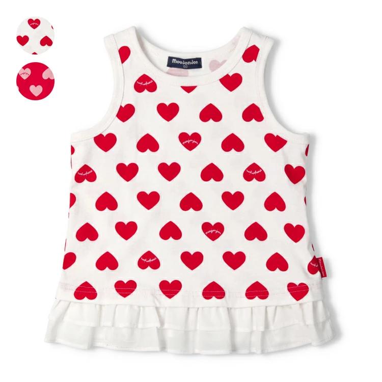 ポップなイメージのハートの総柄プリント。裾フリルが女の子らしいタンクトップ。同じハート柄のワンピース(M44304)、ロンパース(M44701)があるので、姉妹でお揃い、ペアコーデ、リンクコーデもおすすめ!おそろいアイテムはギフトやプレゼントにも人気です!【アイテム】トップス シンプル ガーリー フェミニン カジュアル お洒落 オシャレ かわいい 可愛い 普段着 デイリーウェア お出かけ着 お外着 お外遊び着 子ども こども 女児 女の子 ガールズ キッズ ベビーサイズ トドラーサイズ 幼稚園 保育園 小学校 通園 通学 小学生 2025年春夏物新作 丸高衣料 ホワイト 白色 レッド 赤色 姉妹 お揃い オソロ おそろい お揃いリンク リンクコーデ ペアルック コットン100% 綿100%
