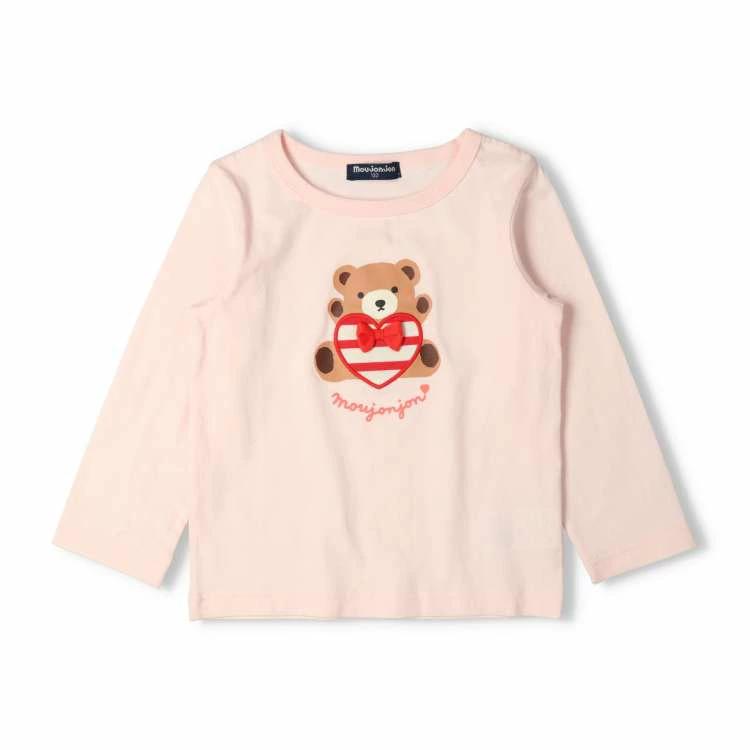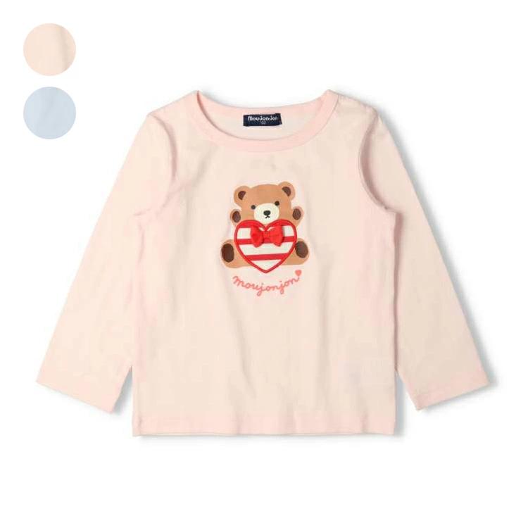 可愛らしいくまのプリントにボーダー生地のアップリケ使いが女の子らしい長袖Tシャツ、ロンT。さりげないリボンのモチーフもポイント! 【アイテム】トップス シンプル ガーリー フェミニン カジュアル お洒落 オシャレ かわいい 可愛い 普段着 デイリーウェア お出かけ着 お外着 お外遊び着 子ども こども 女児 女の子 ガールズ キッズ ベビーサイズ トドラーサイズ 幼稚園 保育園 小学校 通園 通学 小学生 2025年春夏物新作 丸高衣料 ロングスリーブ 長袖 ムージョンジョン 熊 クマ アニマル 動物 ピンク ライトブルー 水色 コットン100% 綿100%