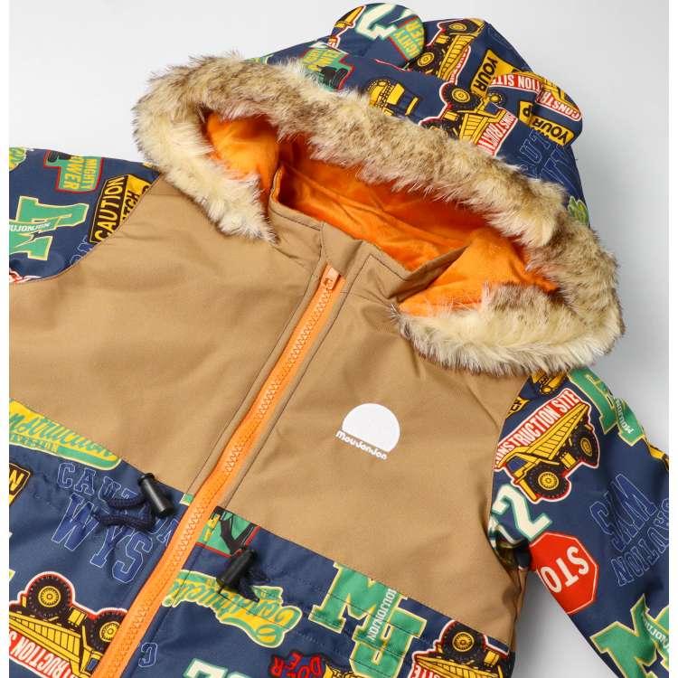 今年もスノーコンビ・ジャンプスーツ・カバーオール・スキーウェア・つなぎを入荷しました♪雪遊びにもおすすめ!!身頃裏地はあったかフリース素材になっています☆足部分は二重構造になっているので、ナイロン部分を中に入れてスノーブーツを履いて、スノーブーツの上から被せると足元から雪が入りにくい!洋服の上から着ることを考え、大き目に作られているので、ジャストサイズをお勧めします。別売りですが、同柄で脚絆、足カバー(M53882)やスノーグローブ、手袋(M53880)もあるので、更なる防寒も可能です!表は耐水圧2000mmの防水加工です!(完全防水ではありません。撥水スプレーとの併用がオススメです。)男の子に人気の働く車にロゴの総柄デザイン。フードには耳付きで可愛い!【アイテム】 カジュアル お洒落 オシャレ かっこいい かわいい 可愛い 普段着 デイリーウェア お出かけ着 ロングスリーブ 長袖 アウター ブルゾン ジャンパー コート ジップアップ フロントジップ 子ども こども 男児 男の子 ボーイズ キッズ ベビーサイズ トドラーサイズ 幼稚園 保育園 小学校 通園 通学 小学生 2024年秋冬物新作 丸高衣料 ネイビー 紺色 カーキグリーン 深緑色 スキー スノーボード ムージョンジョン 工事車両 建機 ブルドーザー