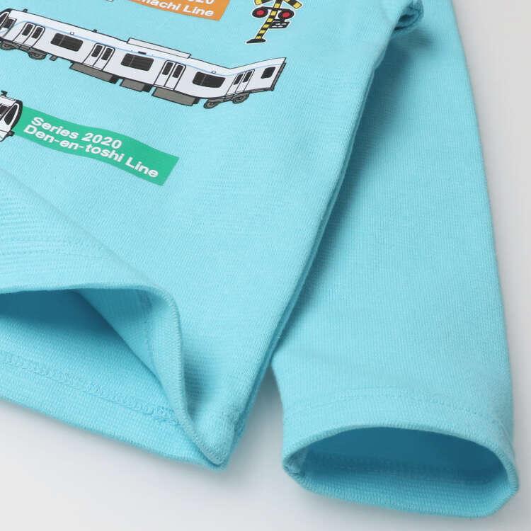 moujonjonのパンツで大人気の伸びもよく柔軟なリップル素材を使った長袖Tシャツ、ロンT。衿ぐりがよく伸び、頭も通しやすい。丁度良い厚みで使いやすい!そんな人気のTシャツに男の子の大人気の東急電鉄の電車の車両のプリント入り。東急田園都市線、東急東横線、東急目黒線、東急大井町線の車両と踏切のプリントデザイン。安心の日本製でギフトやプレゼントにもオススメ!【アイテム】長袖 ロングスリーブ トップス カジュアル お洒落 オシャレ かっこいい かわいい 可愛い 普段着 デイリーウェア お出かけ着 お外遊び着 子ども こども 男児 男の子 ボーイズ キッズ ベビーサイズ トドラーサイズ 幼稚園 保育園 小学校 通園 通学 小学生 2023年秋冬物新作 丸高衣料 鉄道 子鉄 車両 電車 電鉄 トレイン made in Japan メイドインジャパン 国内生産 踏切 カーキグリーン 深緑色 ターコイズブルー 水色 青色 ムージョンジョン