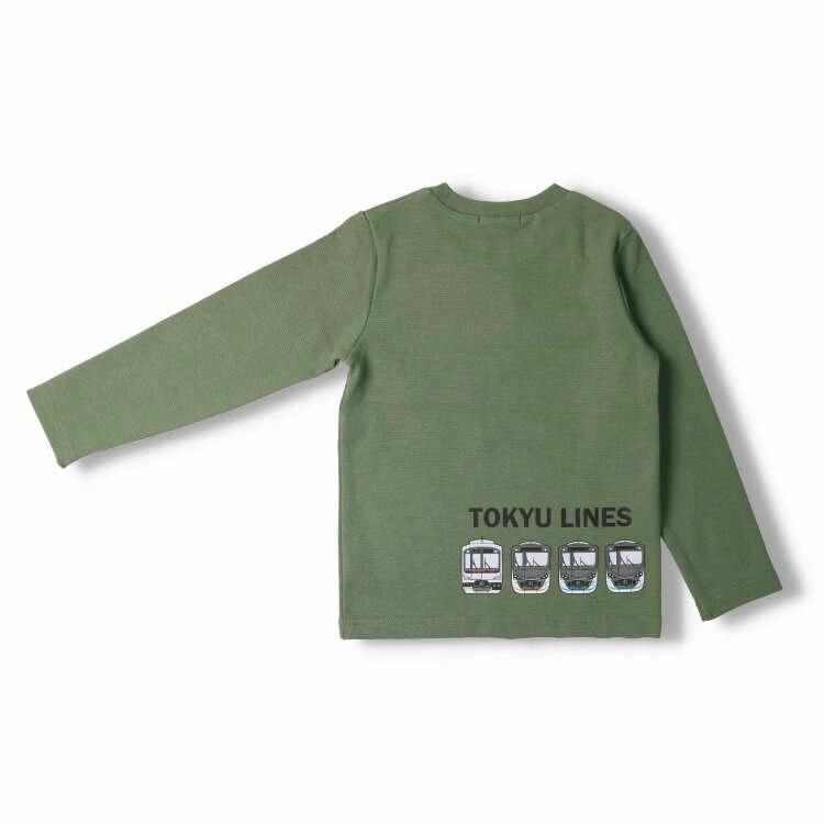 moujonjonのパンツで大人気の伸びもよく柔軟なリップル素材を使った長袖Tシャツ、ロンT。衿ぐりがよく伸び、頭も通しやすい。丁度良い厚みで使いやすい!そんな人気のTシャツに男の子の大人気の東急電鉄の電車の車両のプリント入り。東急田園都市線、東急東横線、東急目黒線、東急大井町線の車両と踏切のプリントデザイン。安心の日本製でギフトやプレゼントにもオススメ!【アイテム】長袖 ロングスリーブ トップス カジュアル お洒落 オシャレ かっこいい かわいい 可愛い 普段着 デイリーウェア お出かけ着 お外遊び着 子ども こども 男児 男の子 ボーイズ キッズ ベビーサイズ トドラーサイズ 幼稚園 保育園 小学校 通園 通学 小学生 2023年秋冬物新作 丸高衣料 鉄道 子鉄 車両 電車 電鉄 トレイン made in Japan メイドインジャパン 国内生産 踏切 カーキグリーン 深緑色 ターコイズブルー 水色 青色 ムージョンジョン