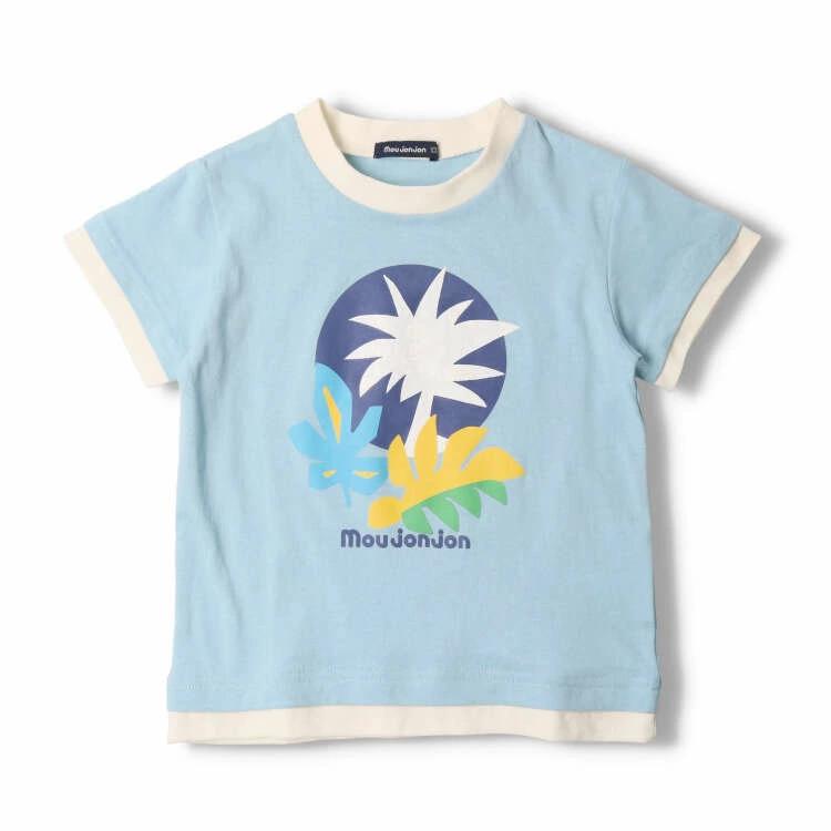 ヤシの木柄の半袖Tシャツ。白いヤシの木柄部分は濡れたら色が浮き出るウォーターチェンジ加工がされています。海・川・プールなどで楽しめます♪【アイテム】トップス カジュアル お洒落 オシャレ かっこいい かわいい 可愛い 普段着 デイリーウェア お出かけ着 お外着 お外遊び着 子ども服 こども服 男児 男の子 ボーイズ キッズ ベビーサイズ トドラーサイズ 幼稚園 保育園 小学校 通園 通学 小学生 2024年春夏物新作 丸高衣料 半袖 ピンク ライトブルー 水色 ムージョンジョン