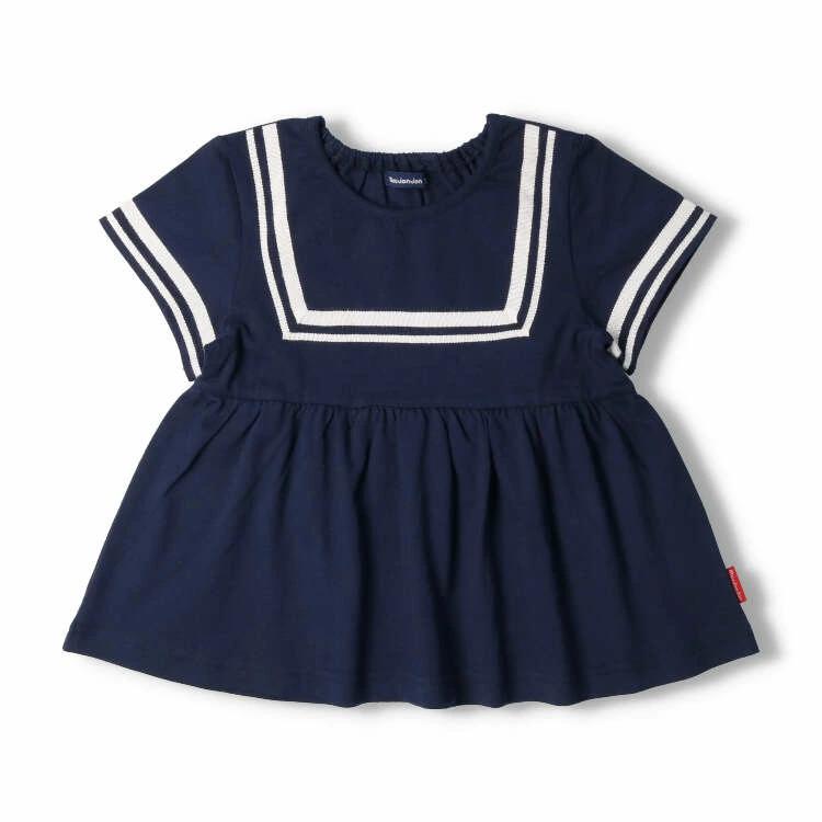 【子供服】 moujonjon (ムージョンジョン) ライン入りセーラーデザイン半袖Tシャツ 80cm~140cm M42801