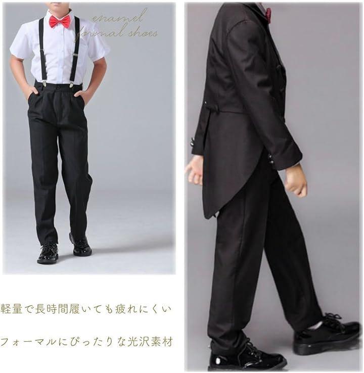 エナメルの光沢が足もとを華やかに演出、オックスフォード型のシンプルなデザインが品のよいキッズフォーマルシューズです。
