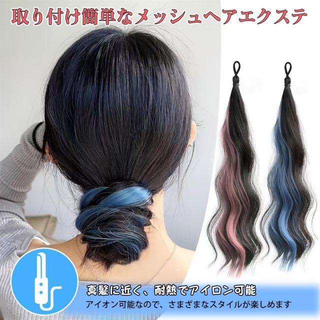 【多様なスタイルに対応】ブラウンをベースにしたピンクのメッシュウィッグで、ポニーテールやお団子、編み込みなど、さまざまな髪型に適しており、可愛らしいスタイルを実現すると同時に、髪のボリュームアップ効果も期待できます