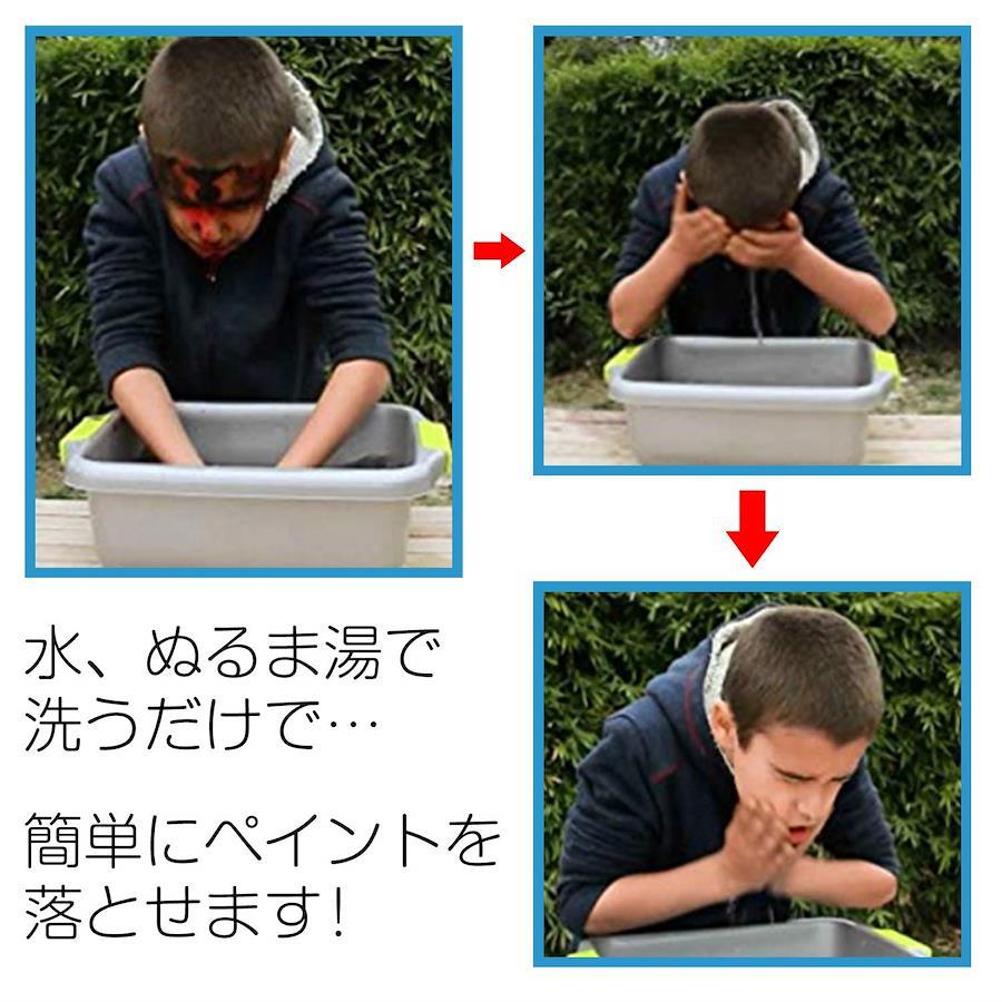 石けんと水で簡単に洗い流せる、お肌にやさしいフェイスペイント用色鉛筆です。