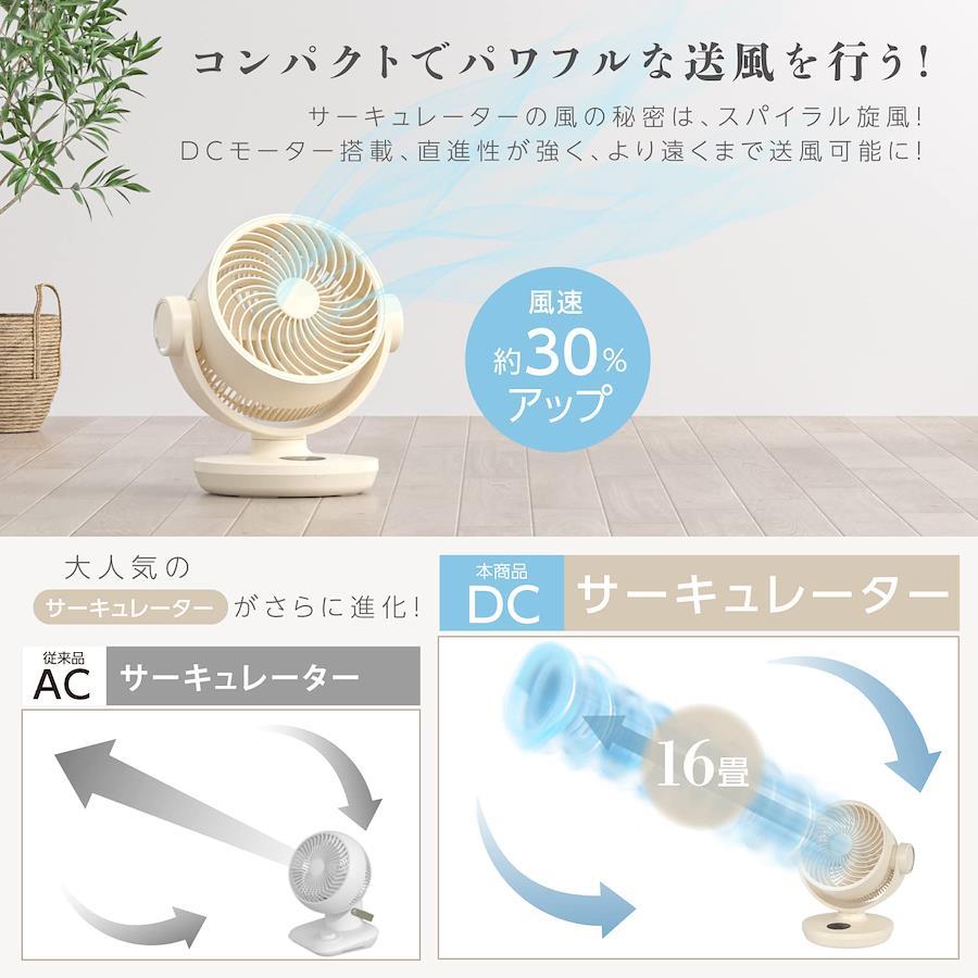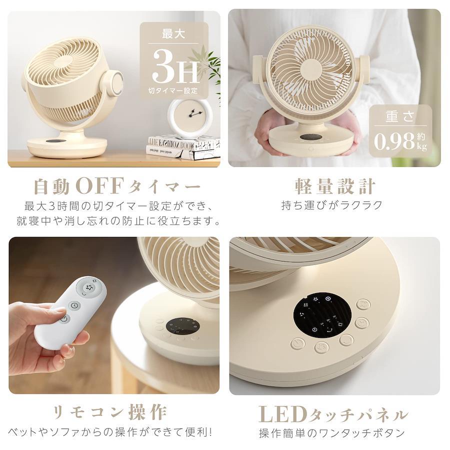 3営業日以内に発送≪新品未開封品≫:【サーキュレーター dc&0.95kg軽量】サーキュレーターは高性能DCモーターを搭載することで、直進性が強く、より遠くまで送風可能に!16畳対応、約0.98kgの軽量&小型サーキュレーターはどこでも手軽に持ち運べて、リビングやキッチン、脱衣所、寝室など様々な場所への設置が容易!【30dB静音&節電・省エネ】サーキュレーター DCモーター仕様で静音性と省エネ性能に優れ、年間を通して使用可能。風量1設定で30dBの静音は作業時も就寝時も気にならず快適に使えます。夏にエアコンを付ける冷房の効率を更にアップし、電気代の節約に繋がり、省エネ。【上下左右首振り&リモコン付き&切タイマー】サーキュレーターは3D自動首振り、左右120度、上下100度に広範囲に風を届けます。扇風機本体のLEDタッチパネルで操作できるし、リモコンを使って遠隔操作も可能!最短1H~最長3Hの3段階タイマーの設定ができます。便利な機能が充実、使用シーンに合わせてご利用頂けます。【風量4段階&お手入れ簡単】サーキュレーター 扇風機の風量は強・中・弱・リズムモードと4段階があり、環境にあわせて切り替られます。好みの風量で
