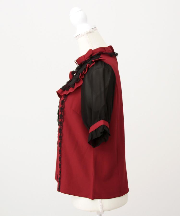 クロスレースが胸元に浮かぶ、儚くて可愛い、病みかわゴシックブラウス