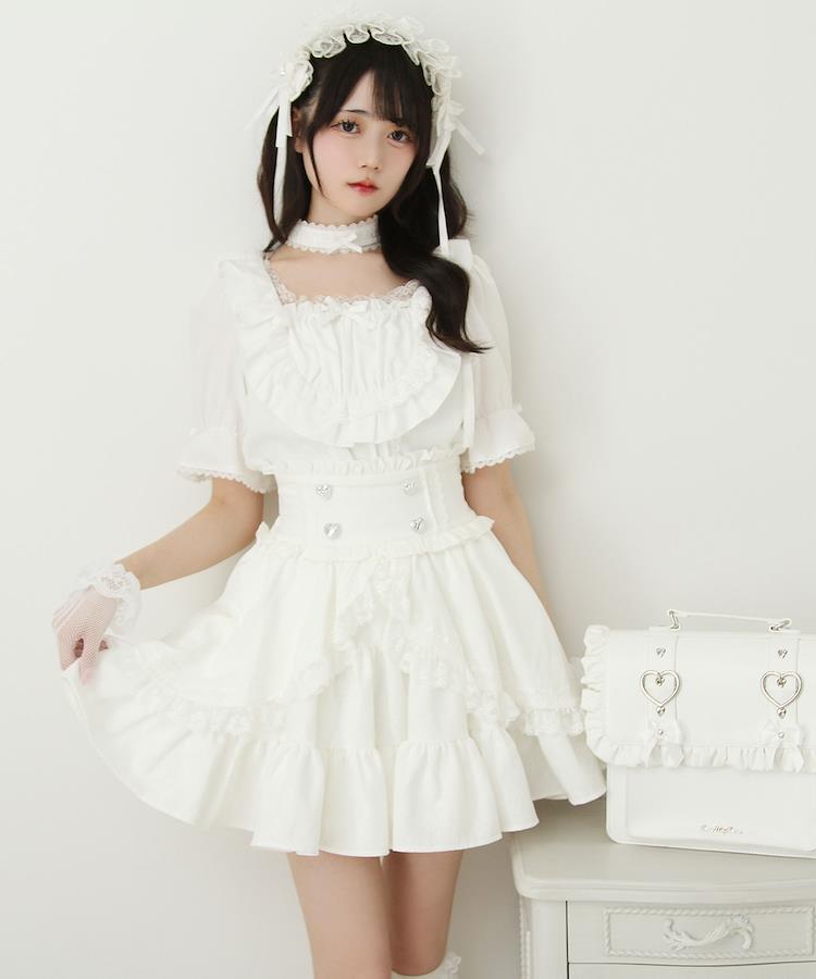 レースフリルデザインがポイントで、所々にかわいいリボンがついています。