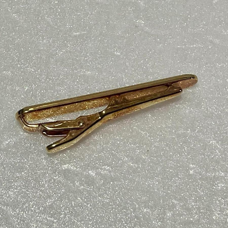 ☆こちらの商品はUSED品ですので新品や未使用品をお求めの方はご遠慮ください。ゴールドのストライプデザインのメタル製ネクタイピン。