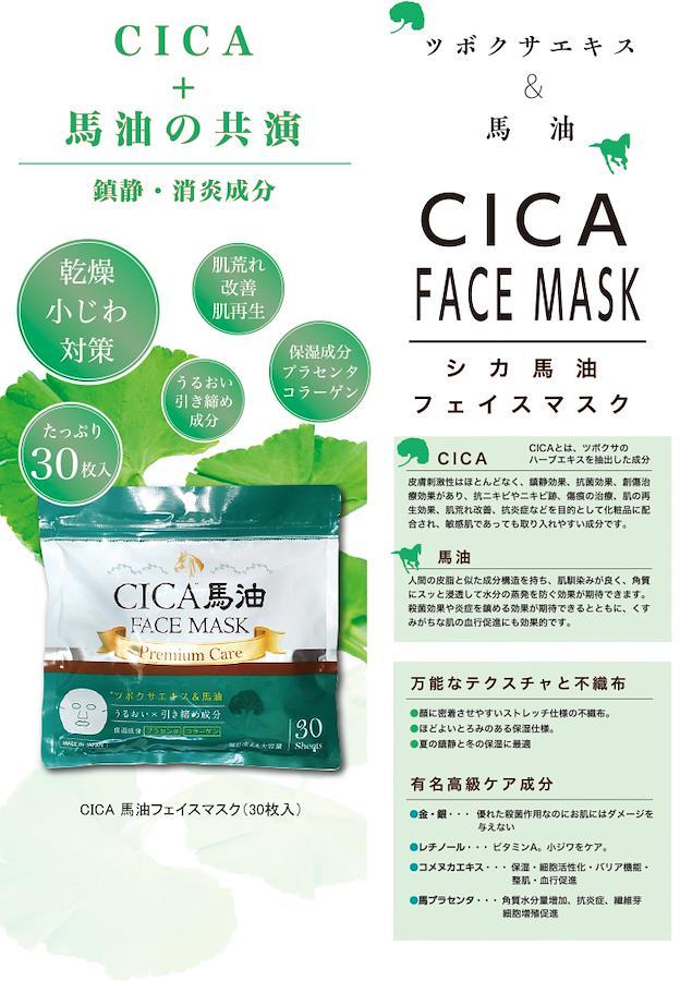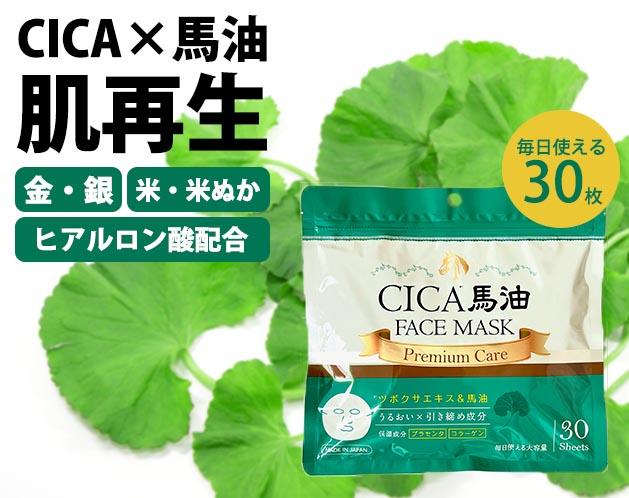 ★CICA(ツボクサエキス)&馬油の他、金、銀、ヒアルロン酸、コメヌカ等の美容成分配合!毎日使える大容量タイプ!*プレミアム成分(金・銀・米ぬか・米・ヒアルロン酸)配合の贅沢なフェイスマスクです。保湿成分のプラセンタ・コラーゲンを配合でしっとり潤い肌へ導きます。*CICA成分とはCICA(シカ)はツボクサ由来の成分で、韓国では昔から傷治療の成分としても使用されていました。ツボクサにはニキビやニキビ跡などをはじめとした、肌の様々なトラブルの抑制効果、さらに敏感な肌のキメを整える力があるとされています。“肌再生クリーム”と噂のシカクリームやシカ配合ローション・美容液は敏感になってしまったお肌の保湿や損傷したお肌を沈静してくれる効果があると言われています。*日本国内の製造で安心&安全製造!