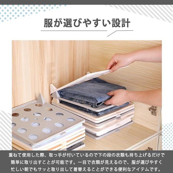 「重ねて置ける衣類収納ボード」クローゼットの中で取り出しにくい衣類も形を崩さず出し入れできるアイテムです。