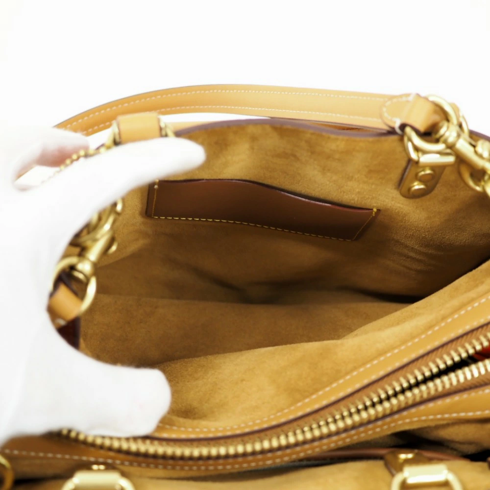 サイズ | 横幅:約25cm 高さ:約20cm マチ:約12cm 持ち手:約9.5cm ショルダー:約60cm レザーショルダー高さ:29cm ※多少の誤差があると思いますが予めご承知の上ご購入をお願い致します。 |