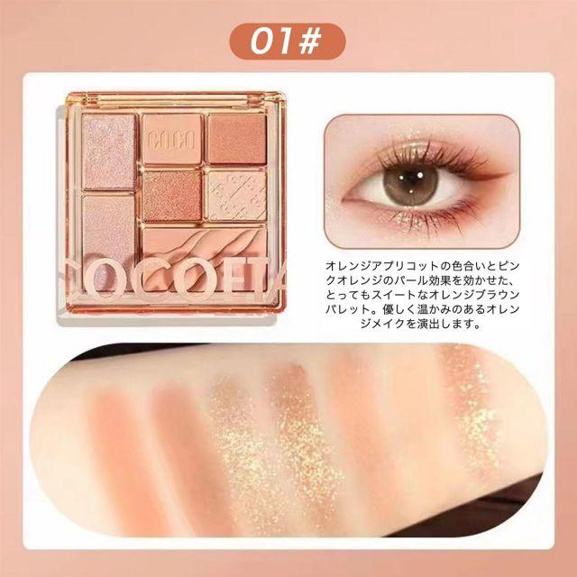 サイズ:小さい◆商品名:COCOETA9色アイシャドウパレット粉飛びなし高演色防水アイシャドウオレンジの色合い遊び心のあるキュートなルックを演出(01-オレンジトーン)