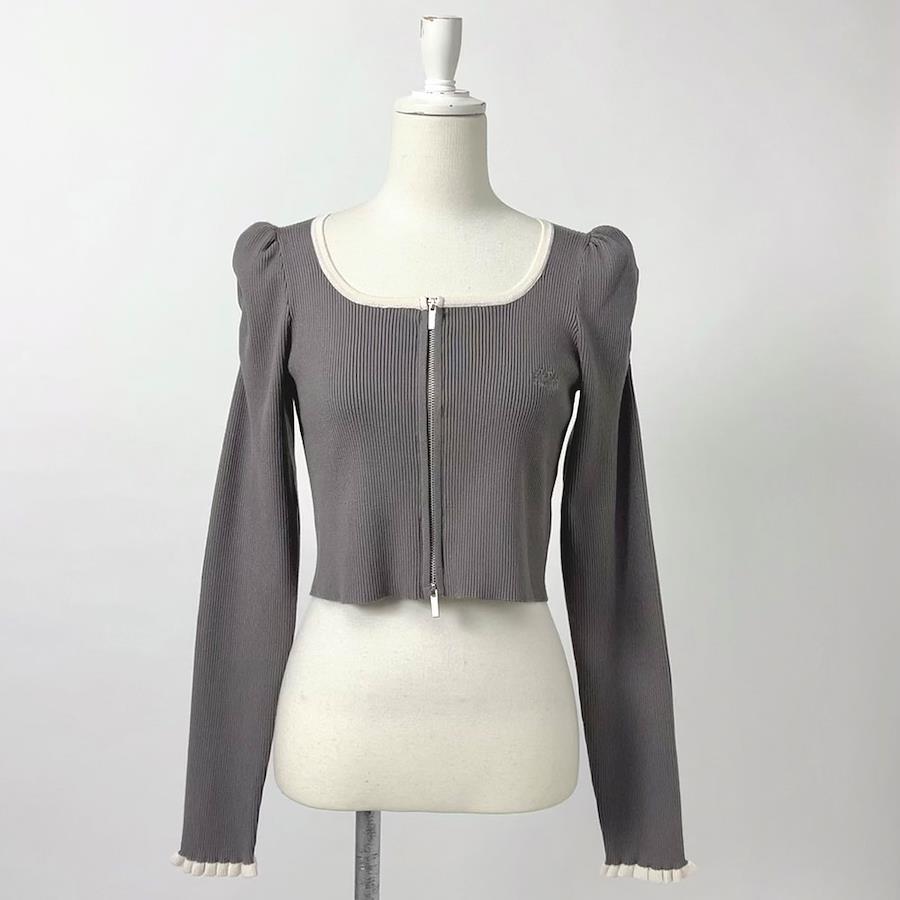 Roseオリジナルロゴ入りダブルジップニットのご紹介。【デザイン】トレンドライクなダブルジップニットが登場!スタイルアップ効果抜群なショート丈でこなれたデザイン◎ジップを閉めてトップスとして着ても、ファスナーを開けてカーデとして着てもOK!配色デザインや、フロントファスナーのシルバーがアクセントに。デコルテが綺麗に見えるスクエアネックで、ネックレスやチョーカーとの相性も◎袖口はちびフリルになっていて、写真に写る手元まで可愛く演出します。新デザインのRoseオリジナルロゴがさりげなく入っており、他とは被らないデザインです!