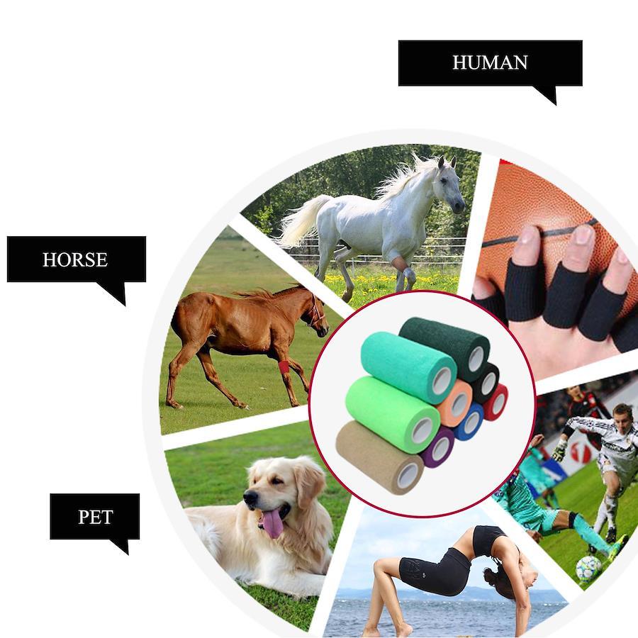 ?自着性:包帯止め(ホック)が不要です。ハサミに不要です。 ?伸縮性:凹凸部位にも巻きやすくフィットします。ハサミに不要です。広くスポーツ、スポーツ、スポーツ保護の分野で広く使用されている ?快適で柔らかく、通気性があり、防水に使用できるため、汗などは包帯の粘着性に影響しません ?弾性不織布: 包帯は強く、柔軟性があり、色が豊富で、一部のツールの保護や装飾に使用できます。 ?包帯だけが重ねてまくだけでくっつく自着性伸縮包帯です。毛にくっつかないので、ペットにも使えます。