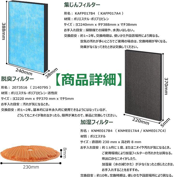 互換品BBT 互換 KAFP017B4 集塵フィルター KNME017C4 加湿フィルター 2140795 脱臭フィルター KNME017B4 1セット入り