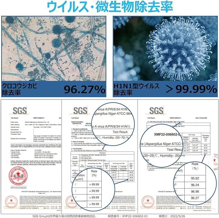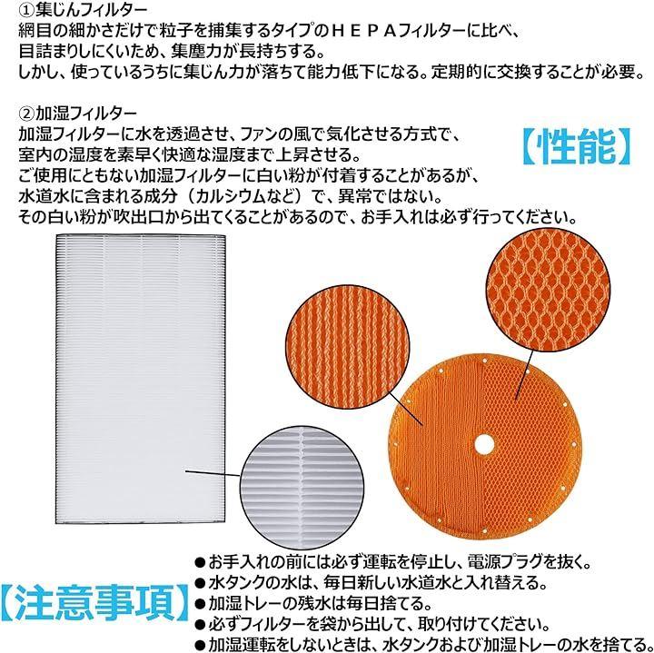 「性能」集塵フィルターはPM2.5、花粉、アレル物質(ダニのふん・死がい)、カビ菌、ホコリ・チリ、タバコの煙(粒子)、ペットの毛などを捕集する。