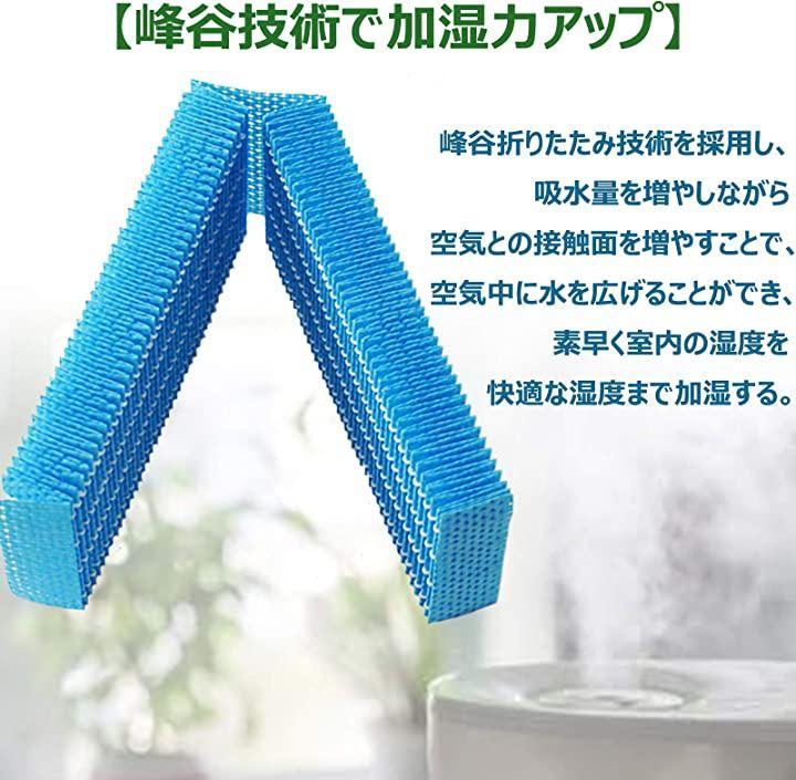 」・「加湿機能」峰谷折りたたみ技術を採用し、吸水量を増やしながら空気との接触面を増やすことで、水分を含んだ抗菌・防カビ加工の加湿フィルターに風を当たて空気中に水を広げる気化式の加湿方で、素早くきれいに室内の湿度を快適な湿度まで加湿する。