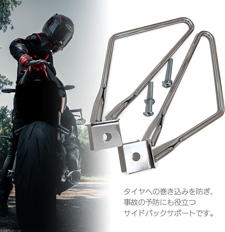 ・荷物のタイヤへの巻き込みを防ぎ、事故の予防にも役立つバイク用のサイドバックサポートサイドガードです。