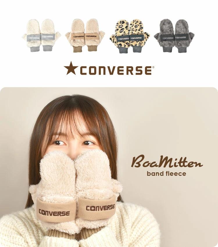 【フリースバンド付きボアミトン】通学通勤やお出掛けなどの防寒グッズとして大活躍すること間違いなし!もこもこのボア素材とリブの組み合わせが可愛いconverseの手袋が登場です♪バンド部分のロゴ刺繍がアクセントとなりカジュアルな雰囲気に。指が出せる2WAYタイプで、スマホ操作も素早くできるので実用性もしっかりあります。ご家族や恋人へのプレゼントにもおすすめです!