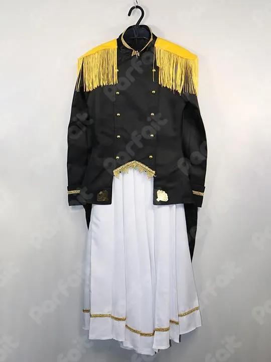 【セット内容】上着、スカート、肩紐【生地の種類】ポリエステル【コメント】未使用の制服衣装です。バスト約88cmウエスト約62cmです。上着はファスナーとマジックテープで着脱します。金ラインはリボンテープ縫い付けです。金模様は合皮貼り付けで再現されており状態は良好です。(2026/3時点)