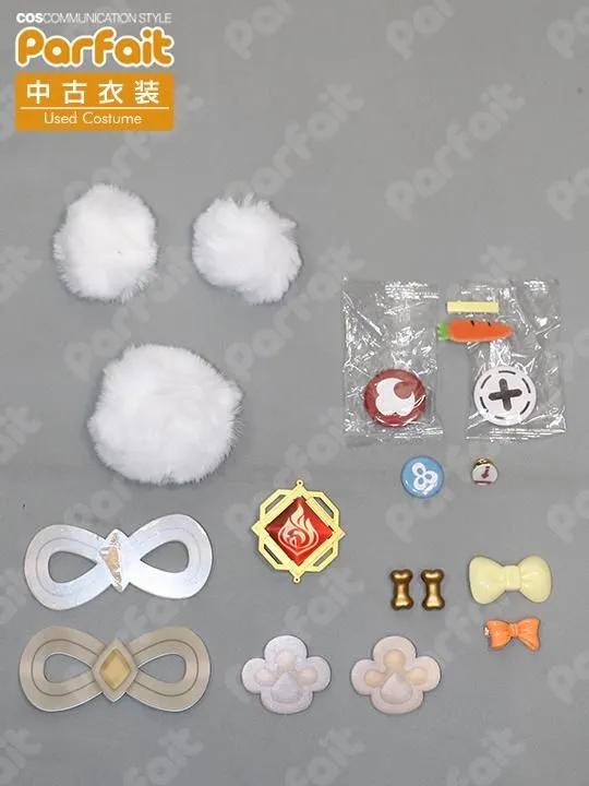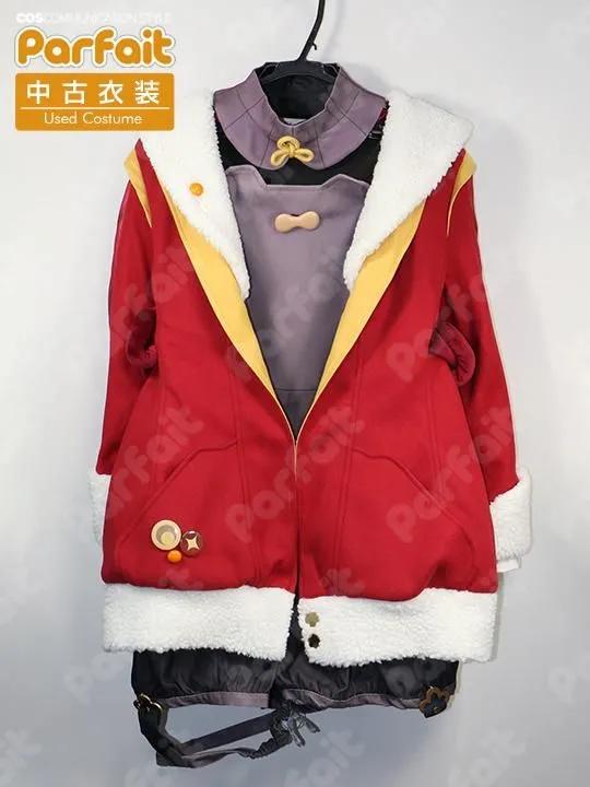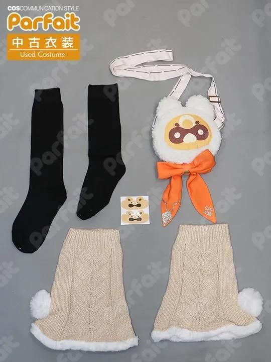 【セット内容】上着、サロペット、インナーシャツ、襟パーツ、襟飾り、胸飾り、上着飾り(襟・正面・袖・裾・背面)、脚カバー、靴下、膝シール、神の目、ポシェット、ポシェット飾り、帽子、帽子飾り、髪飾り【生地の種類】ポリエステル【コメント】Lardoo製。未使用で使用感のない海灯祭衣装です。バスト約106cmウエスト約80cmです。上着は質感の良い厚手のフェルト系生地を使用しており、襟や袖などにはボア生地が使われています。装飾品は缶バッジやクリップ・ピンバッジ留めなどで固定します。上着の背面裾に合皮が使われており状態は良好です。(2026/2時点)脚カバーや帽子はニットです。ポシェットの模様は昇華プリントで、上部にファスナーが付いています。