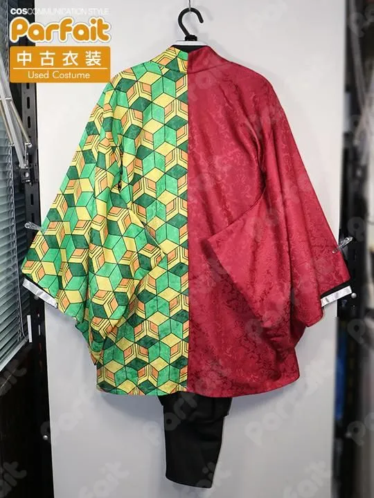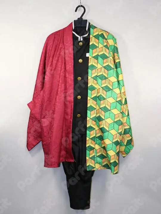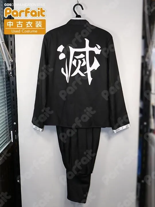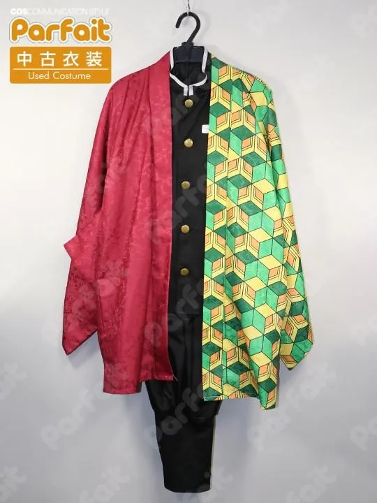 【セット内容】羽織、上着、ズボン【生地の種類】ポリエステル【コメント】冨岡義勇仕様の鬼殺隊制服衣装です。ベルトと脚絆がありません。羽織の柄は柄生地に昇華プリントで、背中の文字はプリントです。ズボンはゴムウエストです。