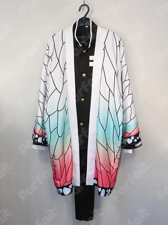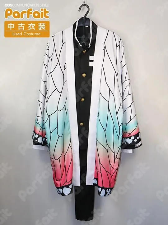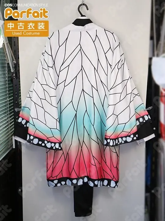 【セット内容】羽織、上着、ズボン【生地の種類】ポリエステル【コメント】胡蝶しのぶ仕様の鬼殺隊制服衣装です。ベルトや脚絆・髪飾りがありません。ズボンはゴムウエストです。羽織の柄は昇華プリントです。背中の文字はプリントで、黒色の色移りによる色ムラがあります。