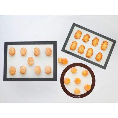 耐熱温度:-40度から300度まで家庭用オーブンのサイズに合わせた、cottaオリジナルのシルパットです。つるっとした表面です。クッキー・サブレ・マカロンなどの焼成時に天板に敷いておくと、生地の焼きコゲがなくムラのない均一な焼き上がりになります。また、アメ細工・チョコレート細工の作業用マットとしてもご使用いただけます。【手入れと保管方法】・初めてご使用になる前に、液体洗剤と柔らかいスポンジなどで洗いよく水気を拭き取ってからご使用ください。・ご使用後は洗剤で洗い、水気を拭き取り乾燥させて保管してください。【中国製】◆ご案内◆マイナーチェンジにより、フチの部分が 茶色⇒グレーに随時変更になります。予めご了承下さい。
