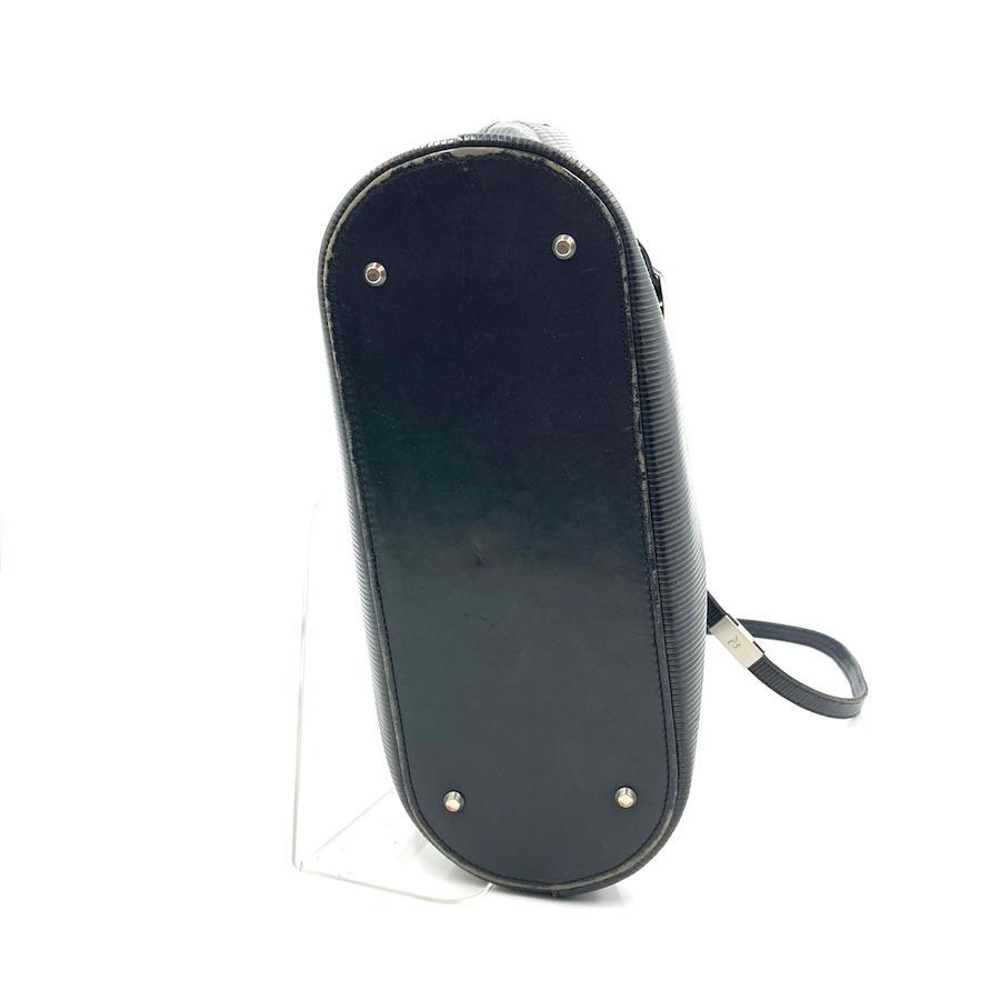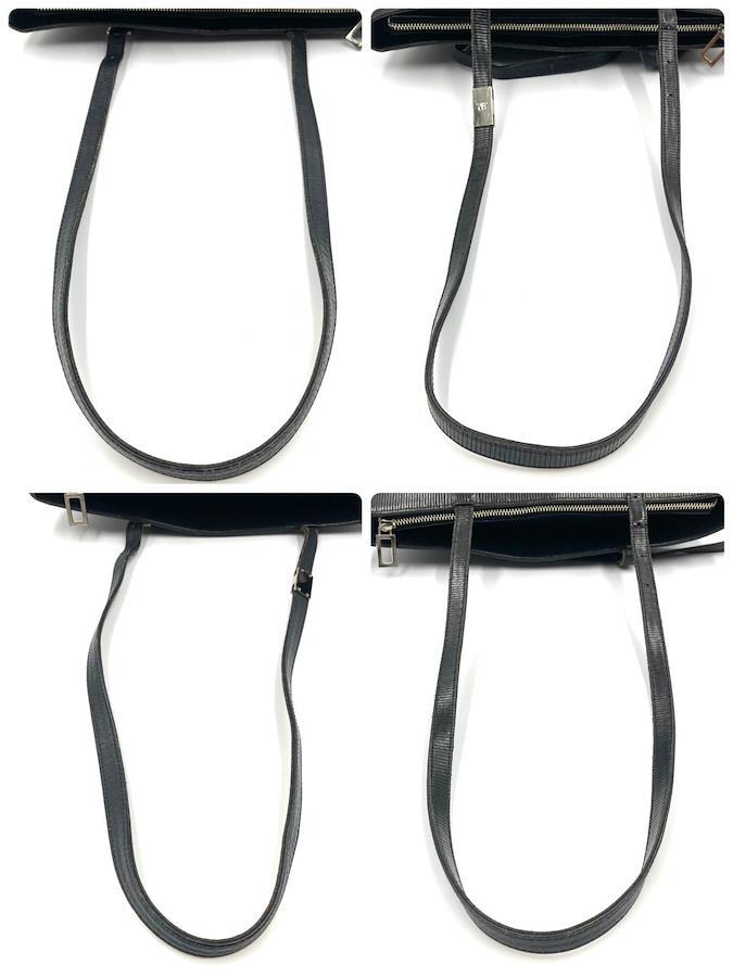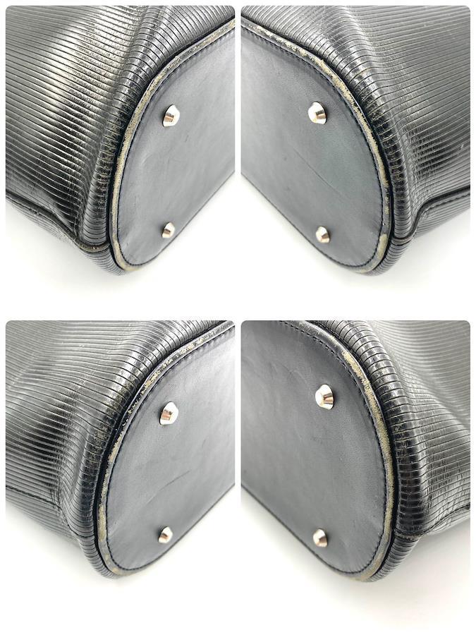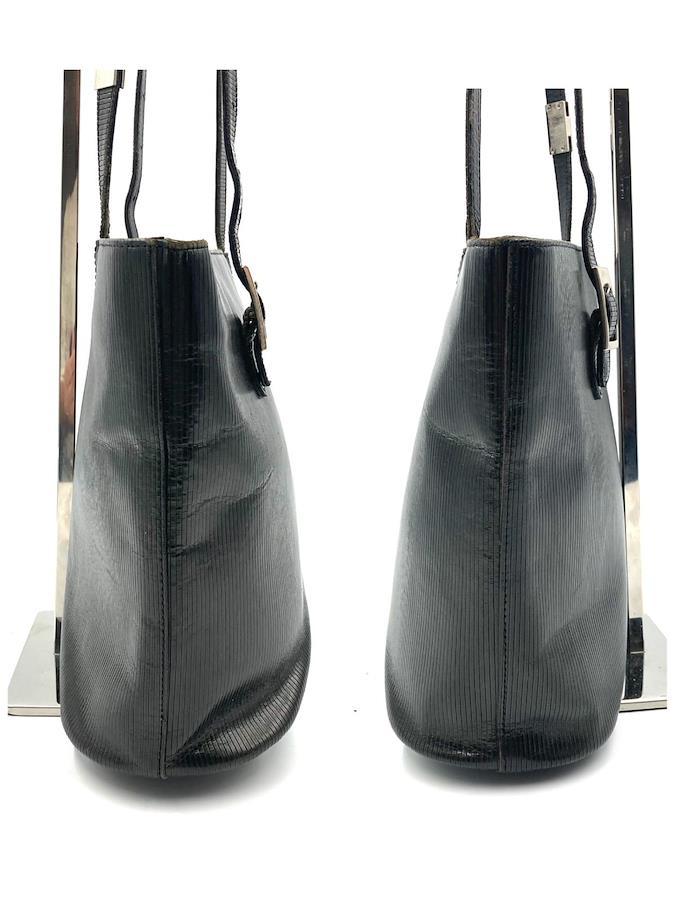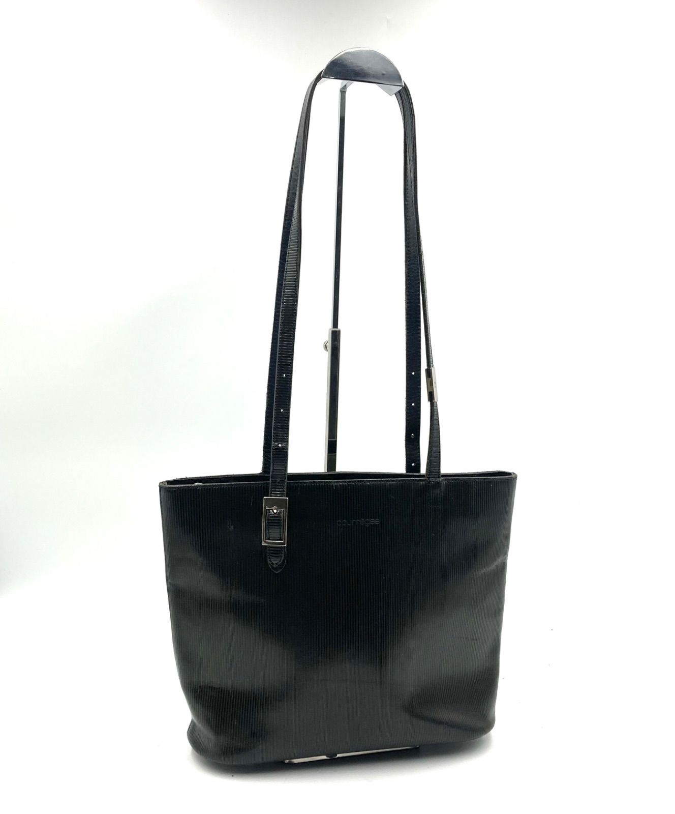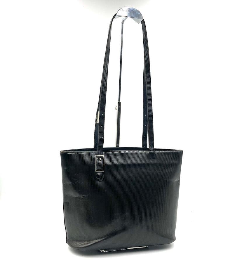 Courreges クレージュ トートバッグ ロゴ型押し ロゴエンボス レザー ヘアラインストライプ ブラック シルバー金具 バケット バケツ型 肩がけ レディース