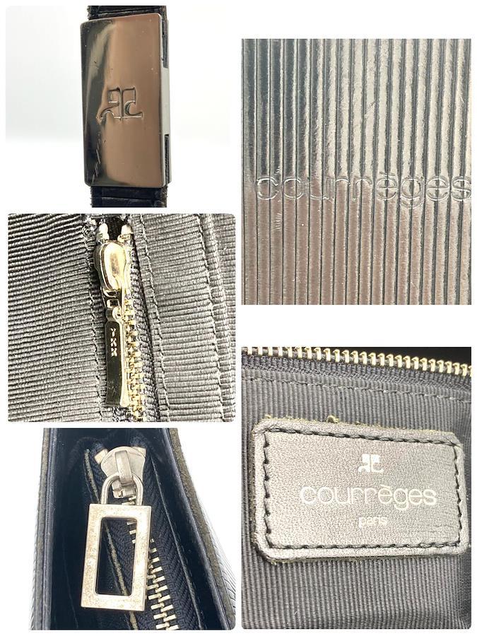■商品概要Courreges クレージュトートバッグロゴ型押し ロゴエンボスレザーヘアラインストライプブラックシルバー金具バケット バケツ型肩がけレディース