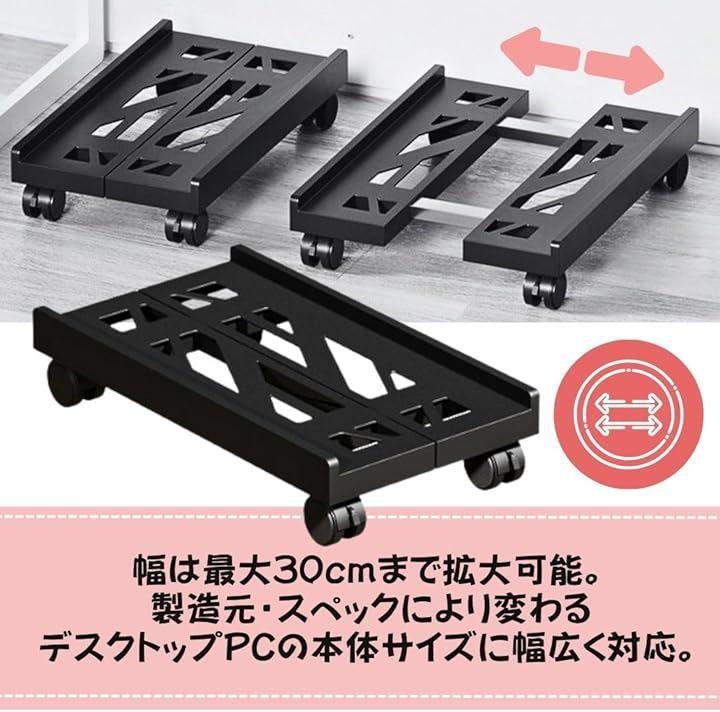 「幅調整可能」幅は約20cm~30cmまで自由に伸縮でき、多様なデスクトップPCにフィットします。