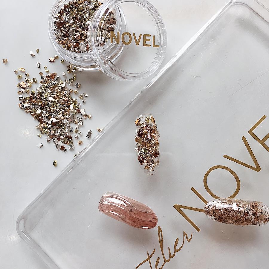 大きなパーツを置いたときやビジュー盛りの隙間にちょっとしたワンポイント、などにお使いください。埋め尽くしとしてお使いいただく場合は一度トップを塗って、未硬化ジェルを拭き取り、出っ張っている部分をバッファーで少しなめらかにして頂きもう一度最後にトップを塗ってコーティングしてください。