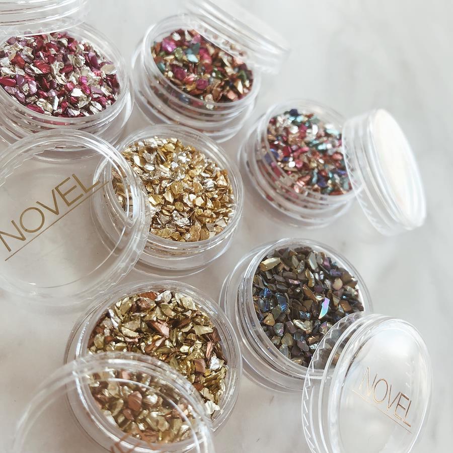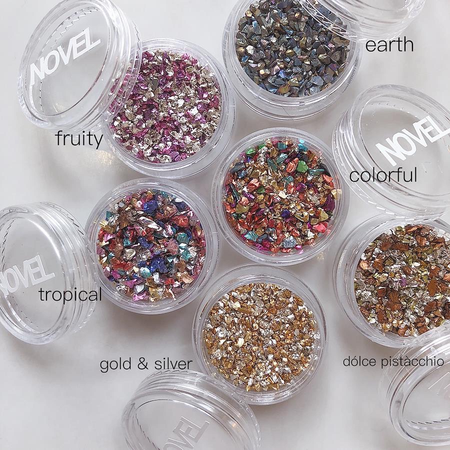 クラッシュグラスこちらは1〜3㎜程度のサイズのカラフルな粒子がミックスになっている商品です。