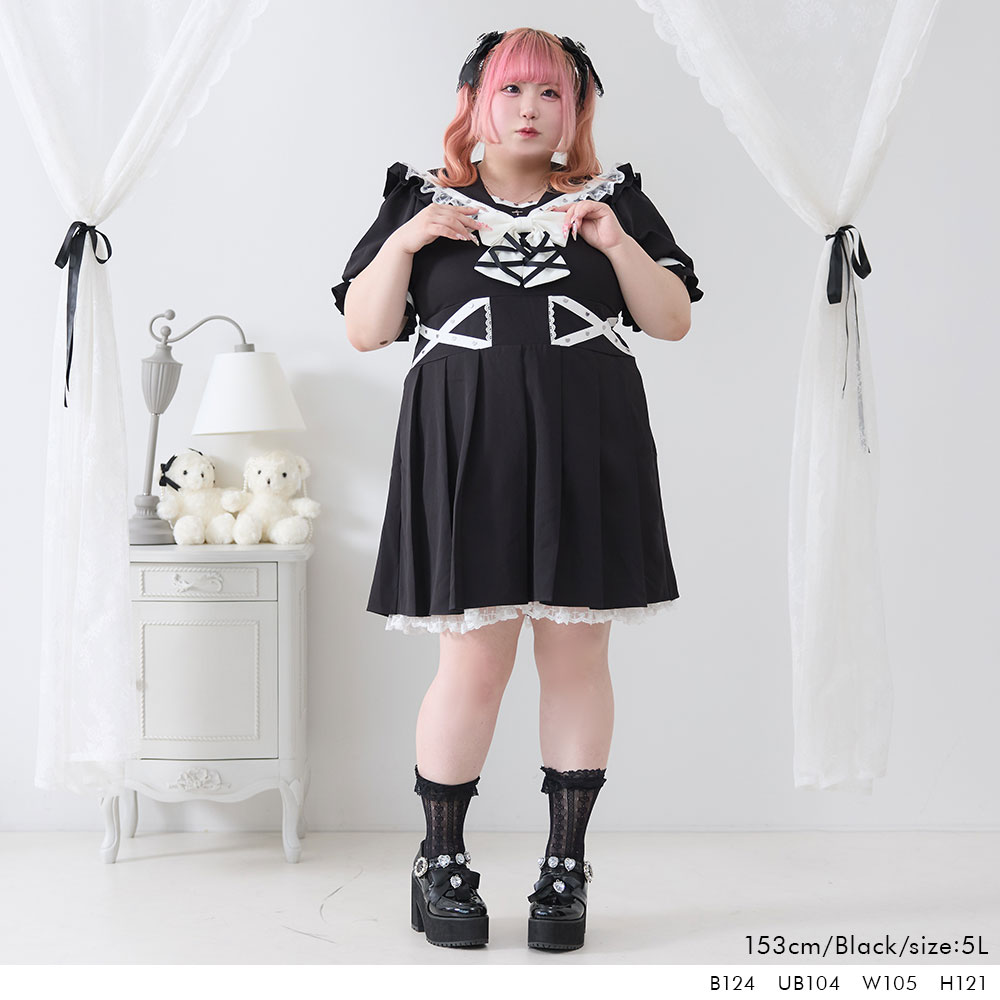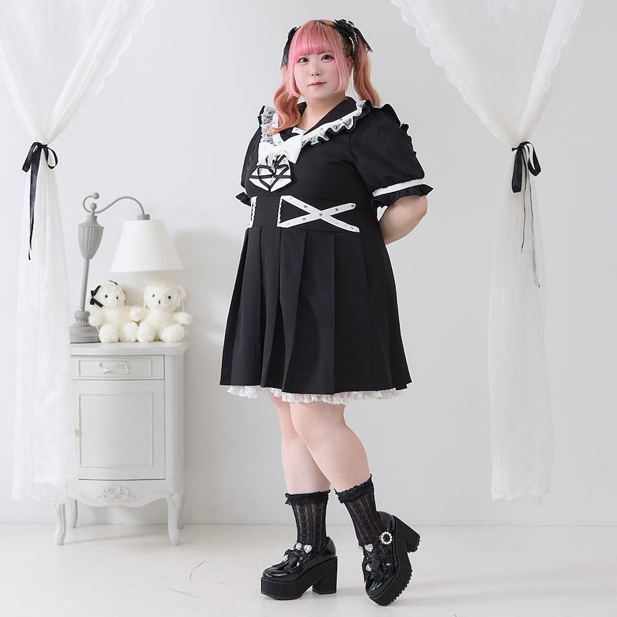 十字架レースハートスタッズセーラーワンピース