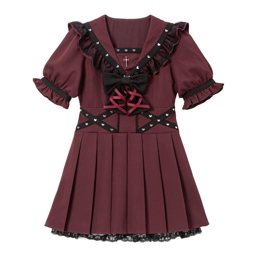 十字架レースハートスタッズセーラーワンピース